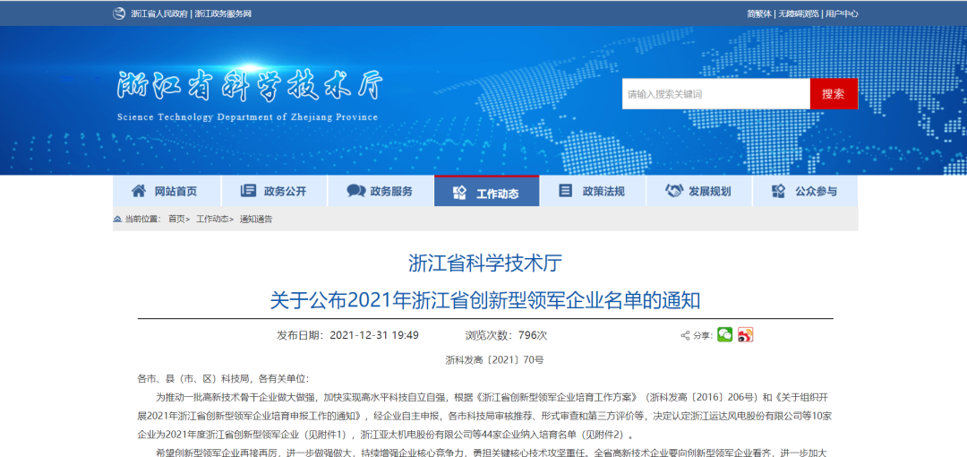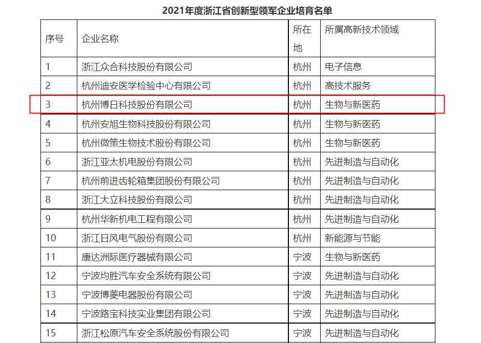 2021年12月31日,浙江省科學技術(shù)廳發(fā)布《2021年浙江省創(chuàng)新型領(lǐng)軍企業(yè)名單》,我司順利入選2021年度浙江省創(chuàng)新型領(lǐng)軍企業(yè)培育名單。