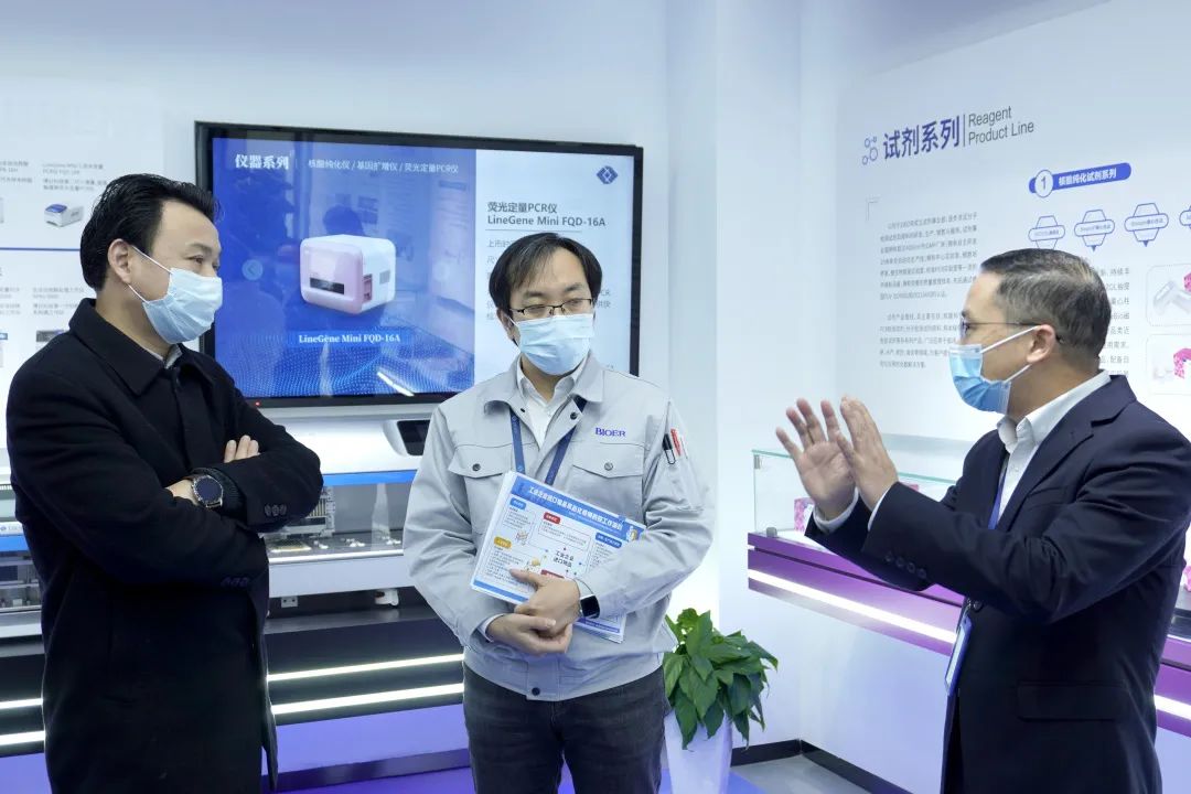1月31日,為防范工業(yè)企業(yè)進口物品攜帶病毒風(fēng)險,市經(jīng)信局黨組副書記、副局長鈕健一行走訪博日科技,向企業(yè)傳達全省工業(yè)企業(yè)進口物品防疫工作視頻會議精神,指導(dǎo)督促工業(yè)企業(yè)嚴格落實進口物品疫情防控措施。博日科技副董事長包有為先生、總經(jīng)理余海先生、副總經(jīng)理陳芝娟女士等陪同。