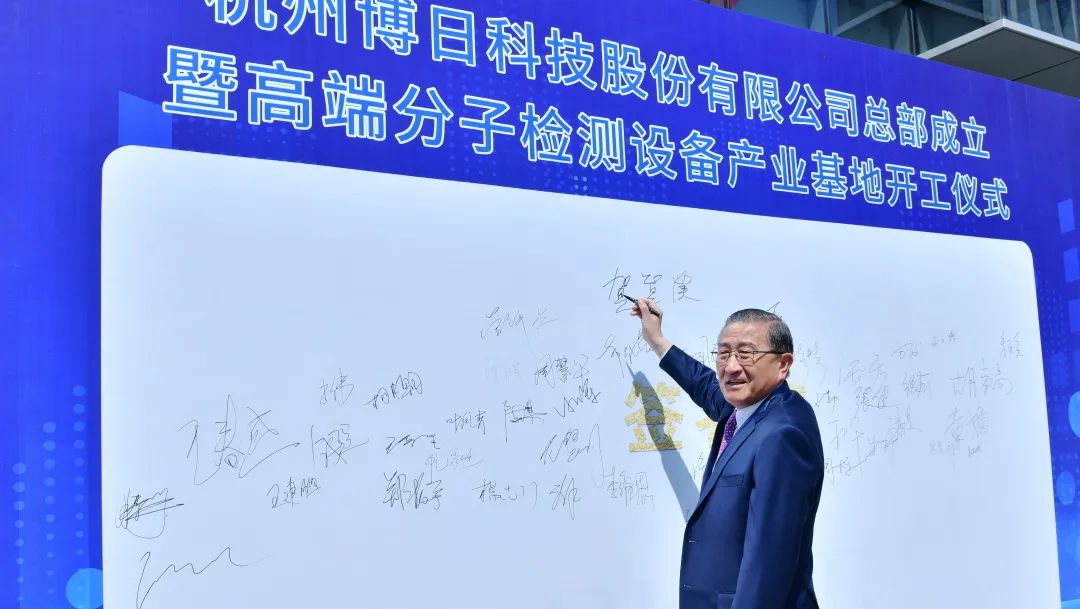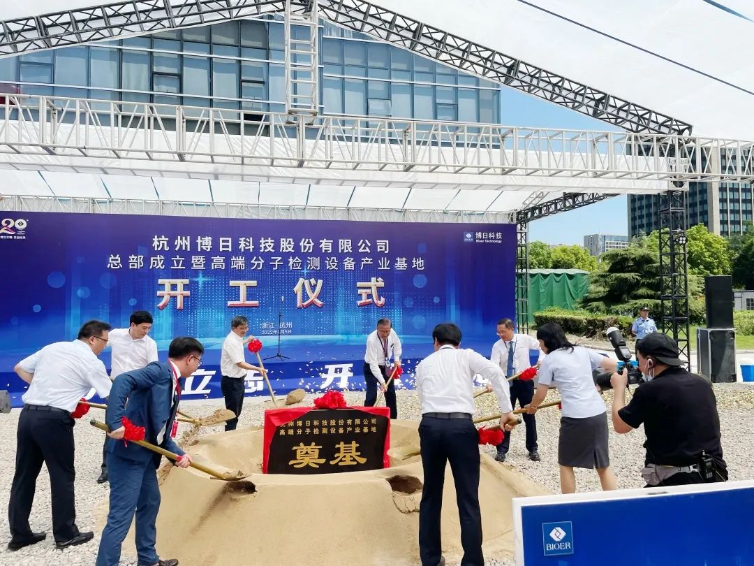 驕陽(yáng)似火,天朗氣清,桂花飄香杭城。8月5日上午10點(diǎn)18分,杭州博日科技股份有限公司總部成立暨高端分子檢測(cè)設(shè)備產(chǎn)業(yè)基地開(kāi)工儀式在杭州市高新(濱江)區(qū)隆重舉行。浙江省疾控中心副主任、黨委書(shū)記胡崇高先生,濱江區(qū)委副書(shū)記、區(qū)長(zhǎng)鄭迪先生,杭州濱江區(qū)委常委、副區(qū)長(zhǎng)陶峰先生,博日科技董事長(zhǎng)賀賢漢先生,浙江宏擇建設(shè)工程有限公司董事長(zhǎng)王偉先生,濱江區(qū)經(jīng)信、發(fā)改、規(guī)資局等各部門(mén)領(lǐng)導(dǎo)以及博日客戶嘉賓等150余人出席活動(dòng)。
