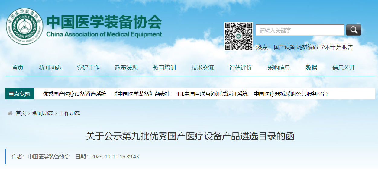 《第九批優(yōu)秀國(guó)產(chǎn)醫(yī)療設(shè)備遴選目錄評(píng)審結(jié)果》公示名單