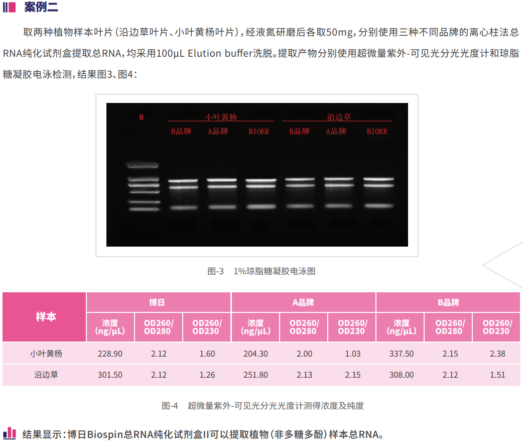 | BSC80M1 | Biospin 總 RNA 提取試劑盒 II | 100T | 1600 | 組織、液體樣本、血液白細(xì)胞、培養(yǎng)細(xì)胞 |