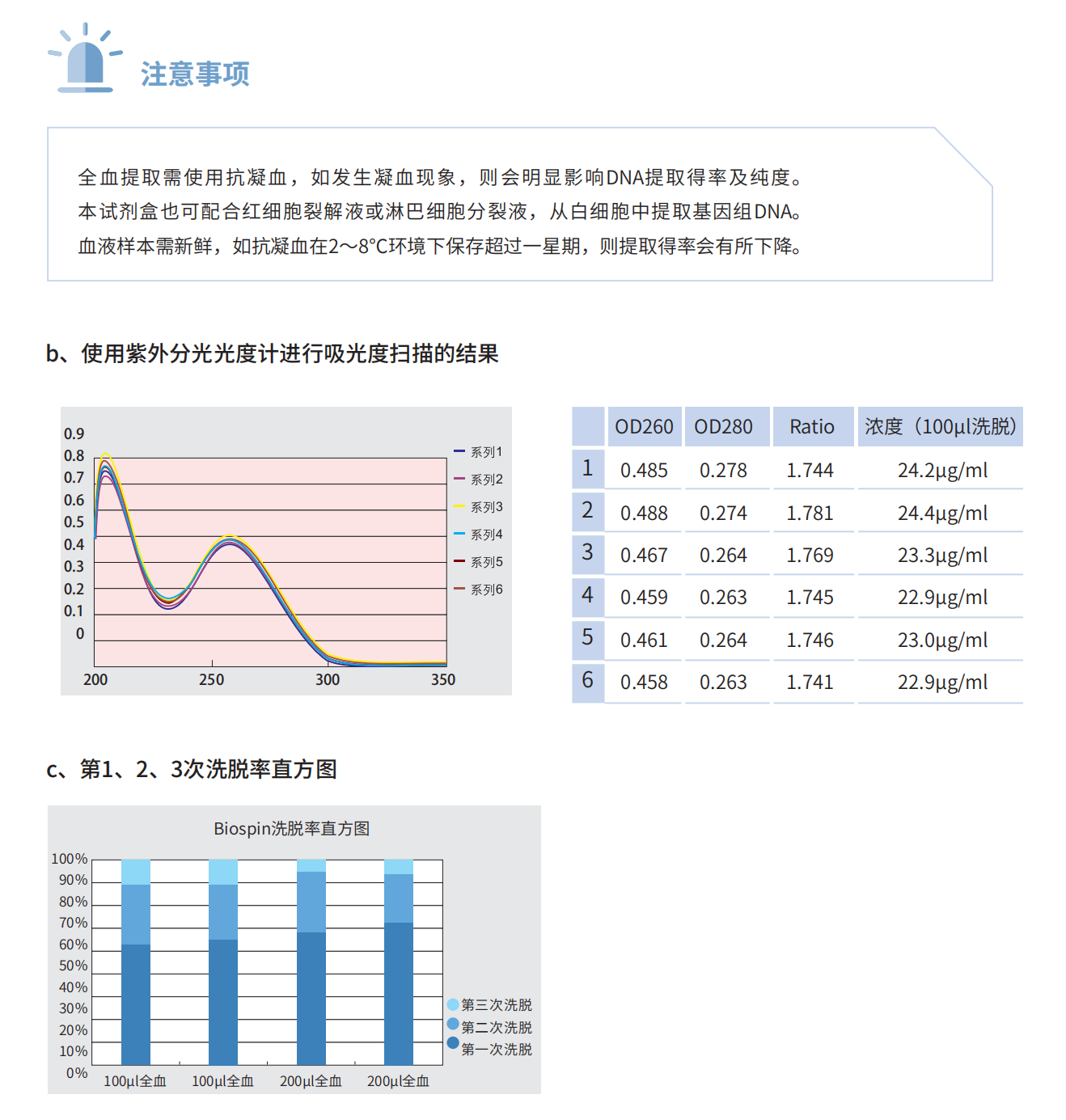 Biospin 全血基因組 DNA 提取試劑盒采用一套獨(dú)特的基因組 DNA 緩沖系統(tǒng),簡單、快速和有效的分離常用抗凝(ACD,EDTA 及肝素)處理的人類全血樣品中的高分子量 DNA,也可以直接提取白細(xì)胞中的基因組DNA。一般情況下,使用 Biospin 全血基因組 DNA 提取試劑盒可以從 200 μl 人類全血中提取 2-6 μg 基因組 DNA,純化的 DNA 可以廣泛應(yīng)用于PCR/Real-time PCR,測序,Southern 雜交、突變分析、SNP 及其他主要分子生物學(xué)的下游應(yīng)用。