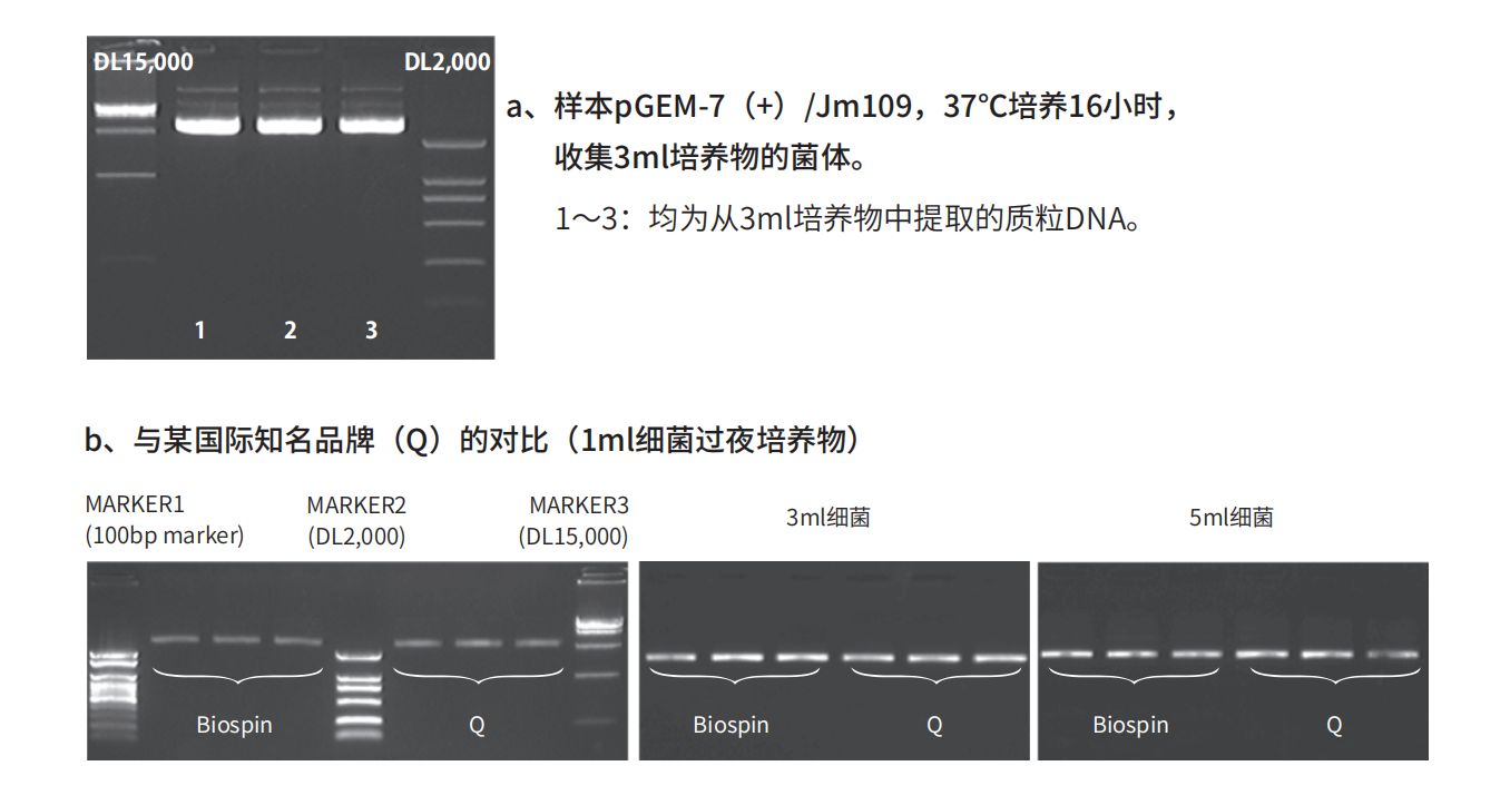本產(chǎn)品基于常規(guī)的堿裂解法和膜吸附技術(shù),用于酵母質(zhì)粒小量純化,可以從3?5ml酵母培養(yǎng)液中提取1?2μg的質(zhì)粒DNA。加入溶壁酶消化酵母細胞細胞壁、堿裂解酵母細胞后,通過離心柱,質(zhì)粒DNA則高效專一的結(jié)合到膜上,經(jīng)過洗滌,除去雜質(zhì),最終用洗脫液可將質(zhì)粒DNA輕易的洗脫下來。提取效率為23?95%,得到的質(zhì)粒DNA可直接用于PCR、酶切、Southern雜交等下游分子生物學(xué)實驗。