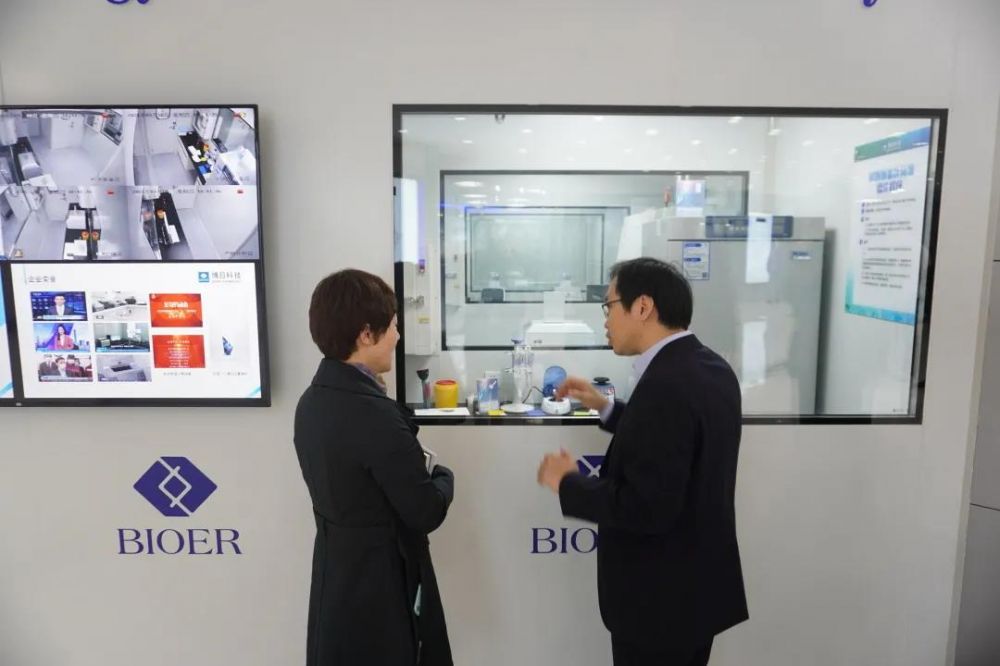 余??偨?jīng)理向錢毓軍局長介紹標準PCR實驗室