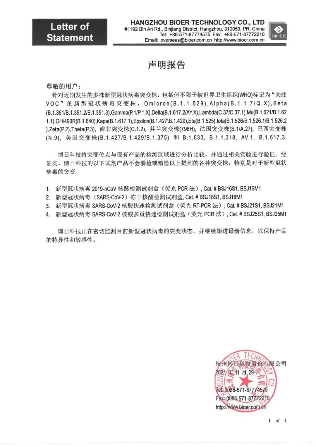博日科技正在密切監(jiān)測(cè)目前新型冠狀病毒的突變狀態(tài),并繼續(xù)跟進(jìn)最新信息,以保持產(chǎn)品的特異性和敏感性。