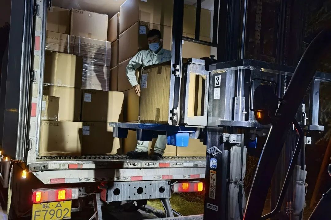 博日試劑生管課、物流倉儲、運(yùn)輸員工響應(yīng)號召,在休息日傍晚立即趕至公司,參與到馳援紹興(上虞)防疫救援行動中來。大家團(tuán)結(jié)一心、迅速行動,不到5個小時就突擊裝載兩車防疫物資,向上虞飛馳而去。