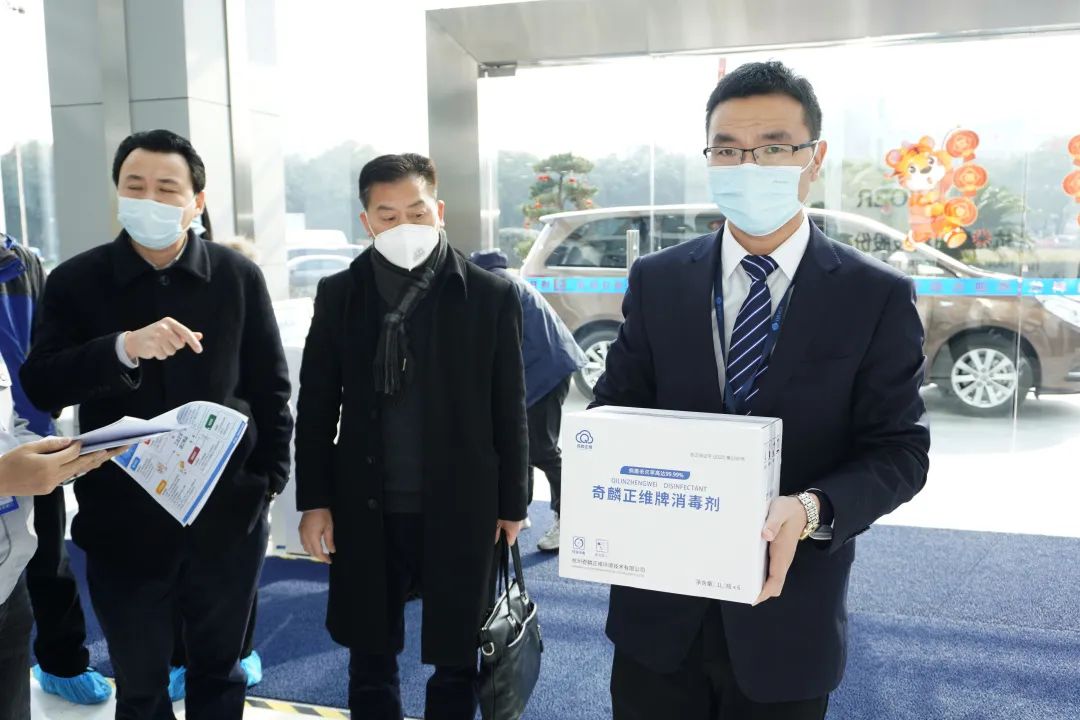 鈕副書記帶來了消毒劑,囑咐公司一定要注重貨物消殺