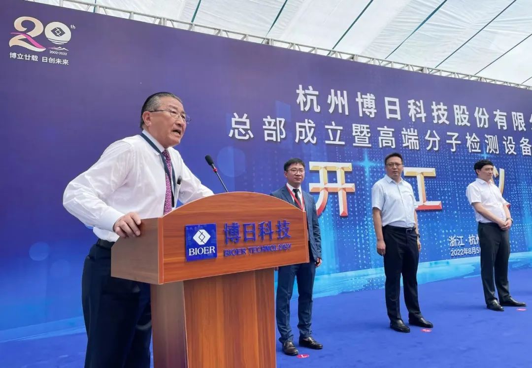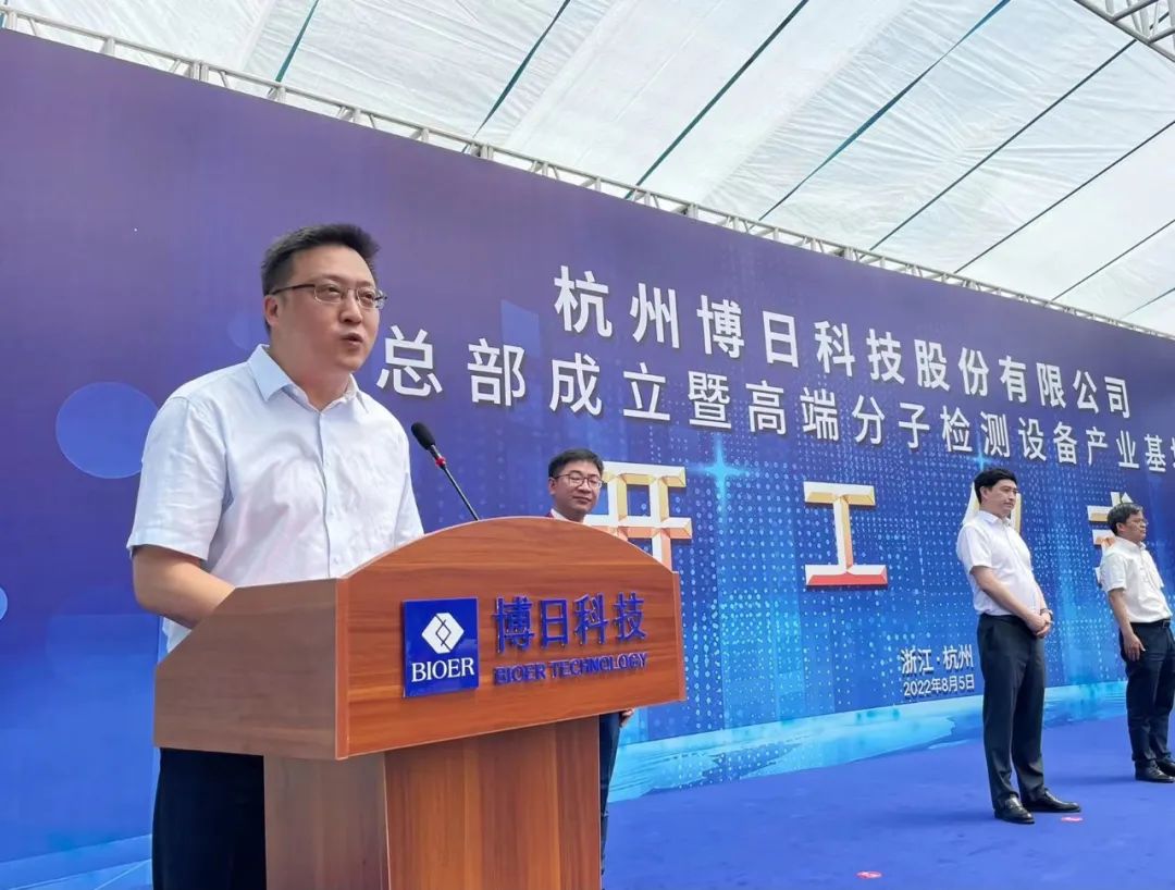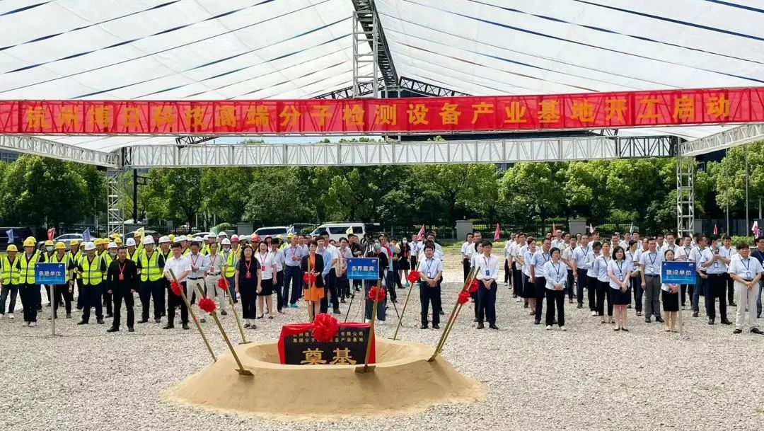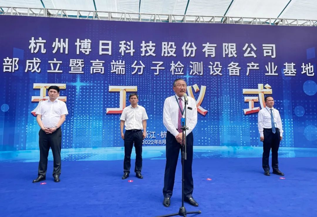 驕陽(yáng)似火,天朗氣清,桂花飄香杭城。8月5日上午10點(diǎn)18分,杭州博日科技股份有限公司總部成立暨高端分子檢測(cè)設(shè)備產(chǎn)業(yè)基地開(kāi)工儀式在杭州市高新(濱江)區(qū)隆重舉行。浙江省疾控中心副主任、黨委書(shū)記胡崇高先生,濱江區(qū)委副書(shū)記、區(qū)長(zhǎng)鄭迪先生,杭州濱江區(qū)委常委、副區(qū)長(zhǎng)陶峰先生,博日科技董事長(zhǎng)賀賢漢先生,浙江宏擇建設(shè)工程有限公司董事長(zhǎng)王偉先生,濱江區(qū)經(jīng)信、發(fā)改、規(guī)資局等各部門(mén)領(lǐng)導(dǎo)以及博日客戶嘉賓等150余人出席活動(dòng)。