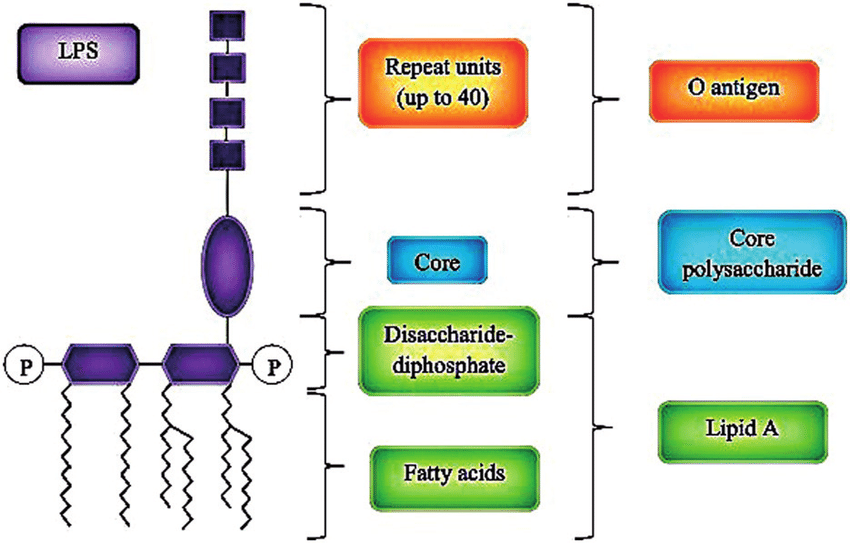 內(nèi)毒素(Endotoxin)是一種脂多糖(LPS),廣泛存在于革蘭氏陰性菌如大腸桿菌、沙門氏菌、布氏桿菌、傷寒桿菌、變形桿菌等的細(xì)胞壁中。當(dāng)革蘭氏陰性菌積極生長時(shí)少量釋放內(nèi)毒素,在死亡時(shí)大量釋放內(nèi)毒素,表現(xiàn)出毒性。脂多糖(LPS)來源于革蘭氏陰性細(xì)菌外膜,LPS由菌體O特異性多糖(O antigen)、非特異性核心多糖(Core polysaccharide)和脂質(zhì)A(Lipid A)三部分構(gòu)成。脂質(zhì)A是內(nèi)毒素的主要毒性組分。